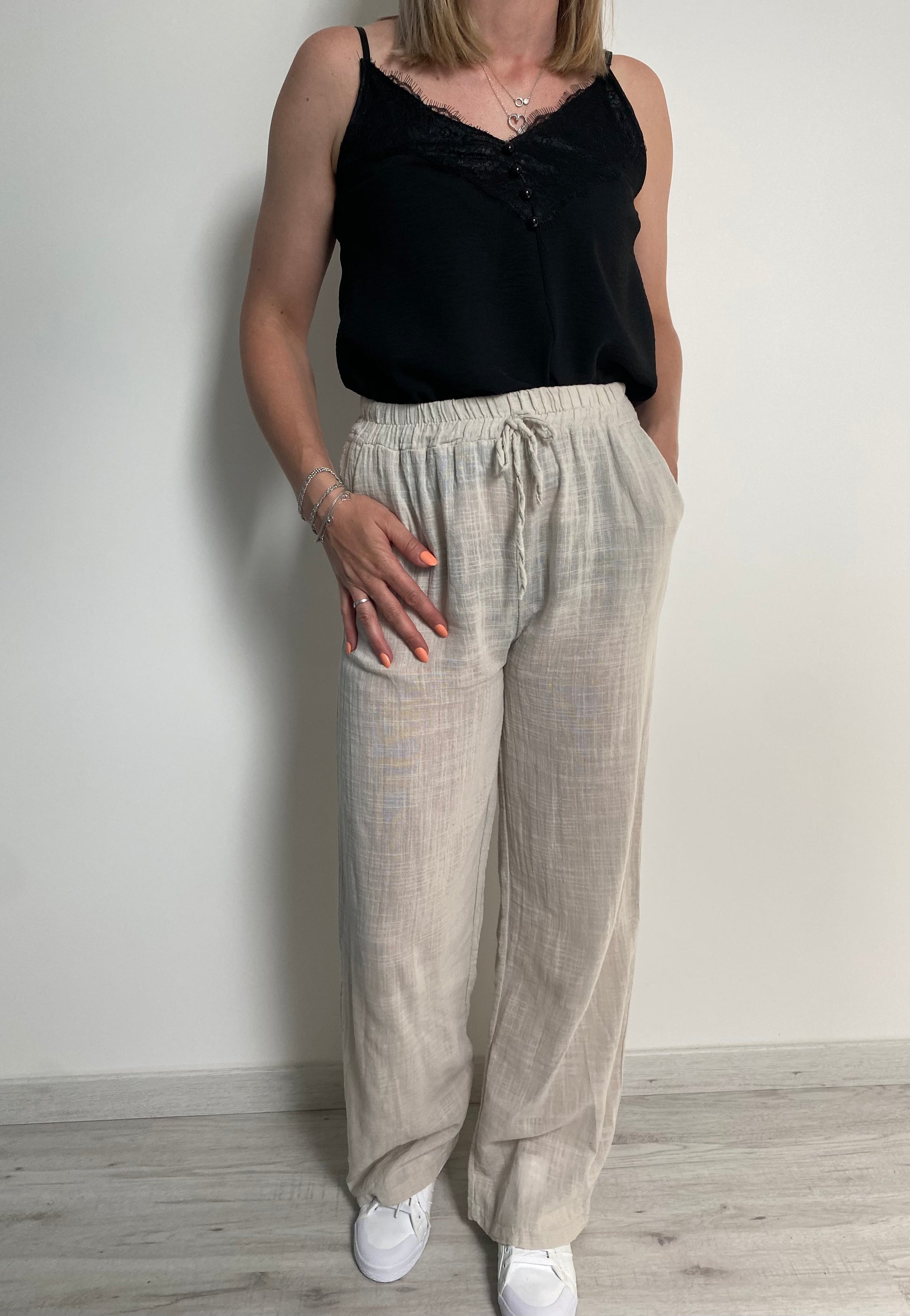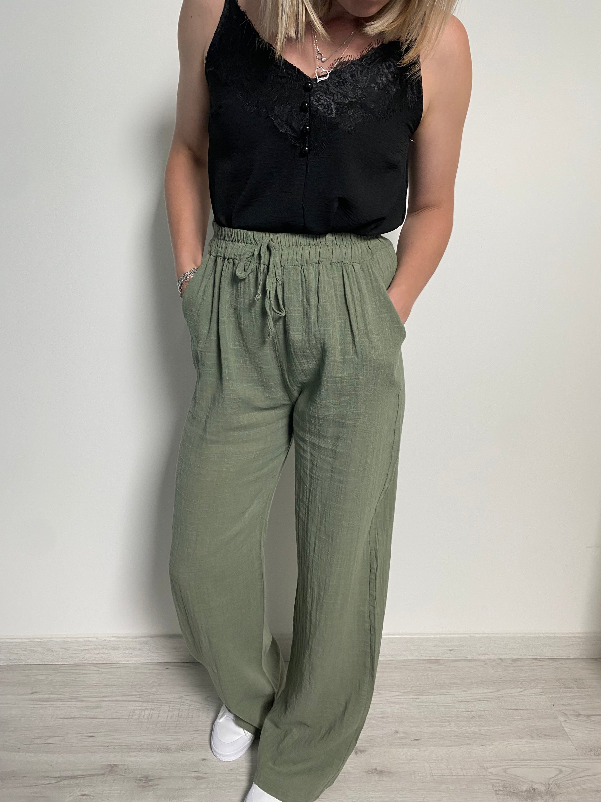 Pantalon Rosalie en coton tissé avec poches , élastique à la taille , coupe droite