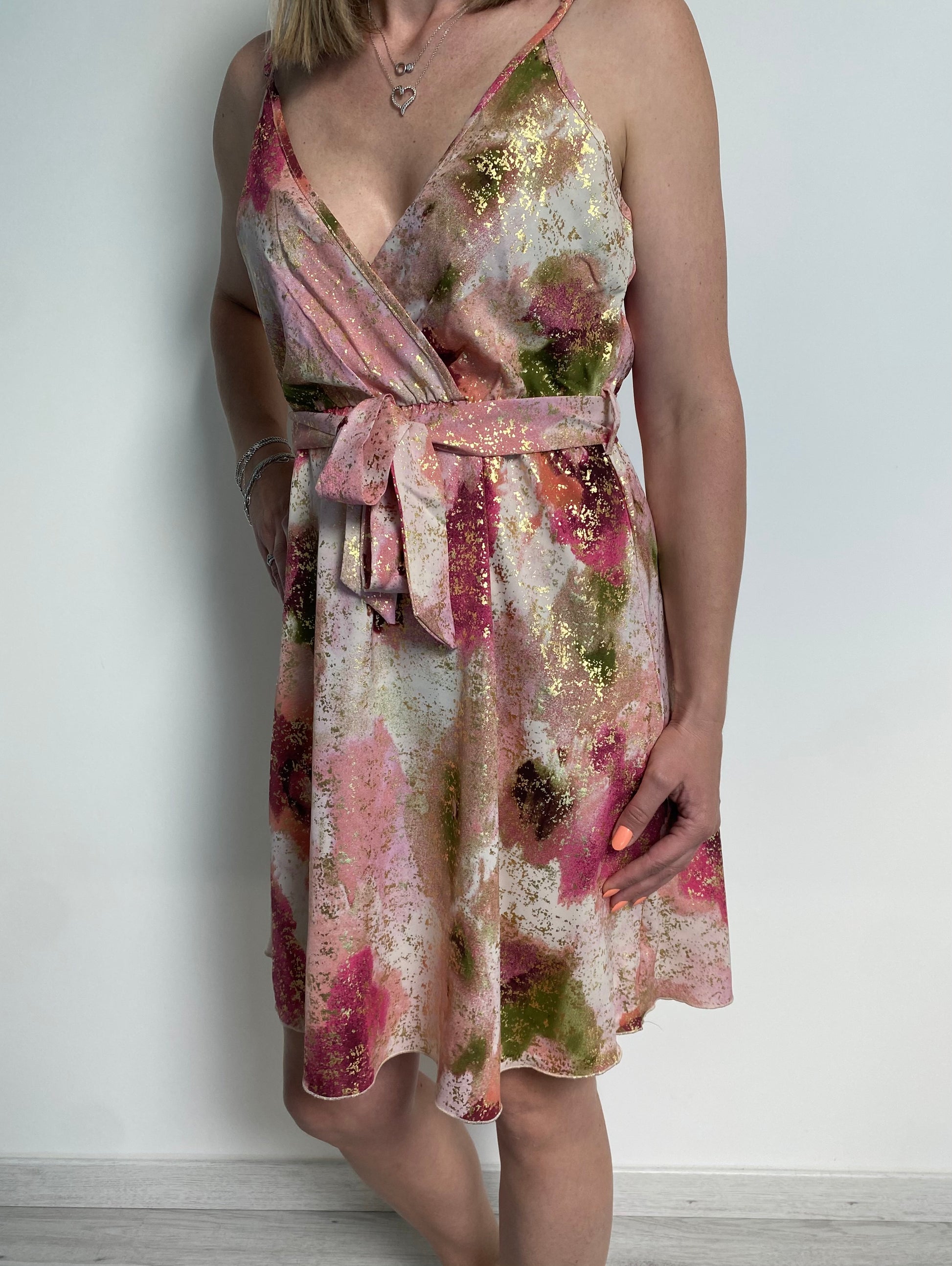 Robe Adèle légère avec des bretelles réglables , une encolure croisée et une taille cintrée avec un nœud